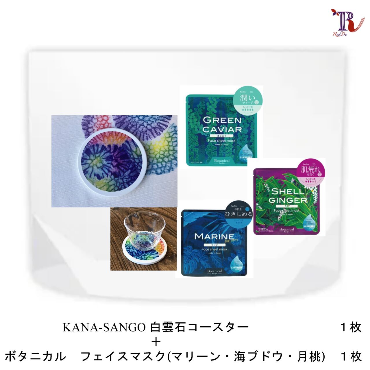 沖縄の海が育んだ珊瑚の幻想的なデザインを浮かび上がらせた珊瑚染めの白雲石を使用したコースターと、沖縄のパワーを秘めた自然素材のフェイスマスクは、品質にこだわりを持っています。製造国は日本で、厳密な品質管理の下で生産されています。